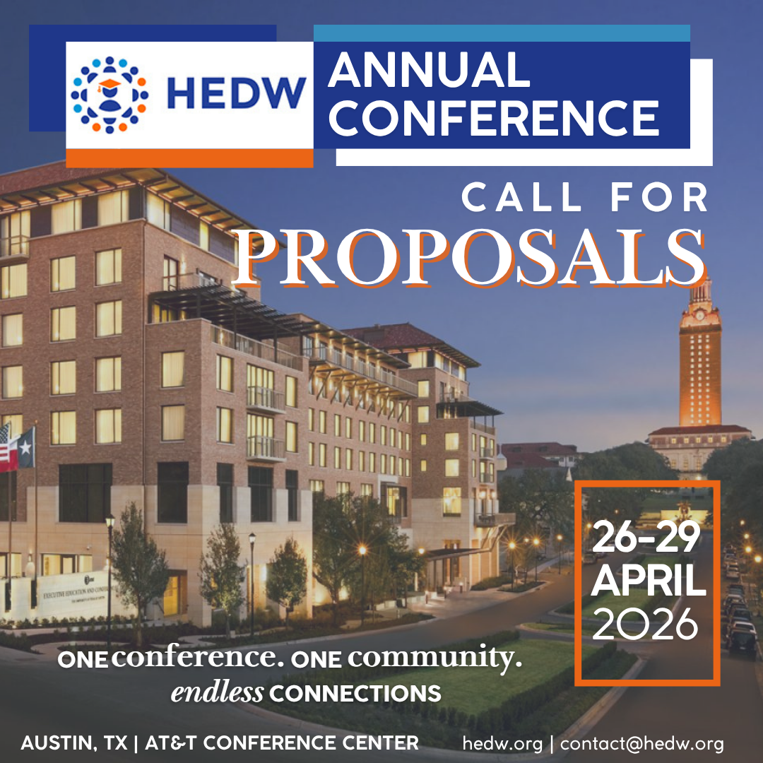 To recognize the time and effort required to prepare and deliver a session, the primary presenter of each accepted proposal will receive a complimentary registration to the 2026 HEDW Conference.